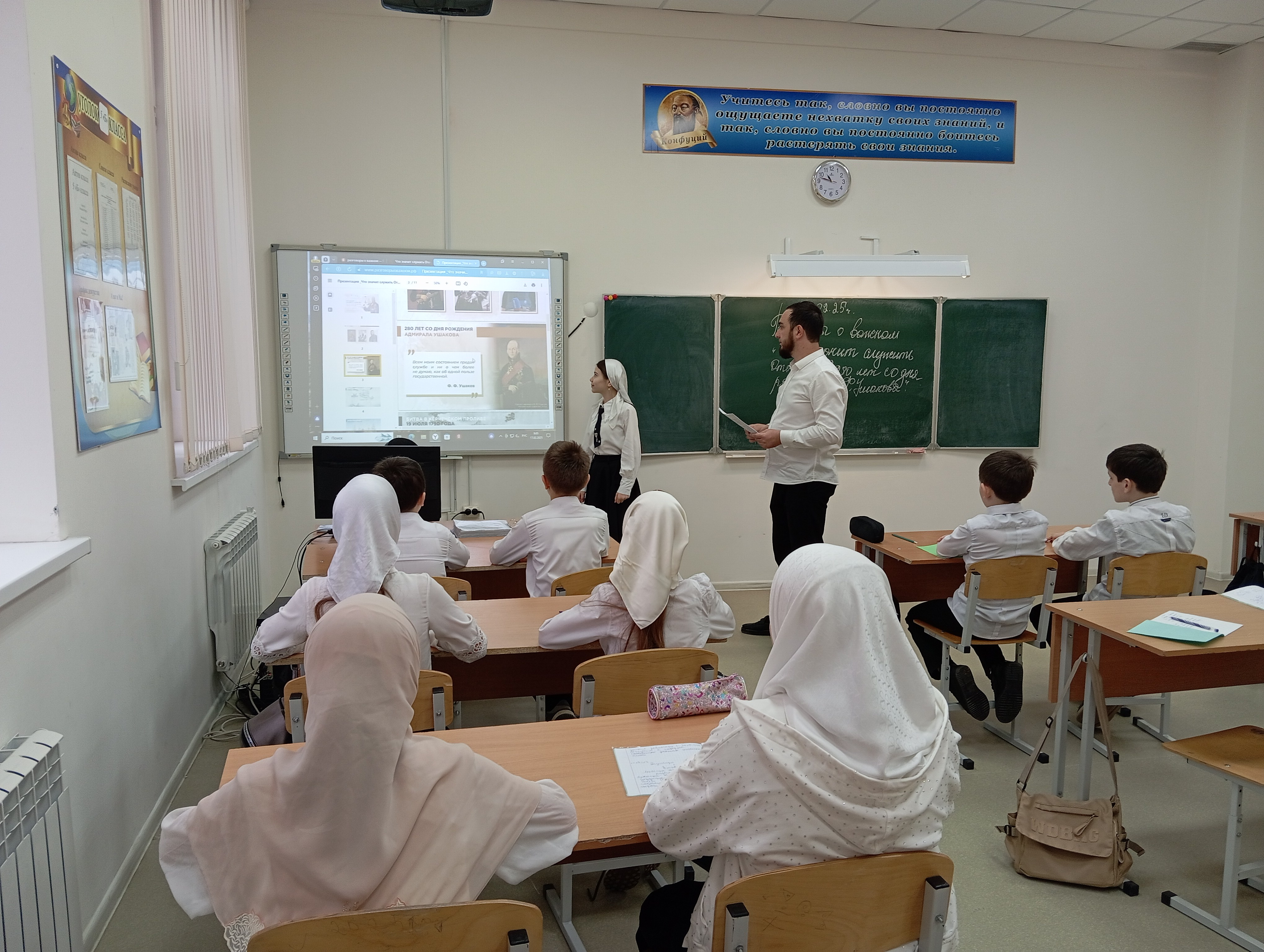 17.02.2025Сегодня, 17 февраля, в 5 классах В нашей школе прошло очередное занятие курса «Разговоры о важном», посвященное теме «Что значит служить Отечеству? 280 лет со дня рождения Ф. Ушакова». Во время просмотра видеоролика «Жизнь и подвиги Федора Ушакова» ребята познакомились с героическими страницами истории, связанными с адмиралом, обсудили основные понятия: патриотизм, честь, долг, милосердие, служение Отечеству и ответственность за его судьбу.