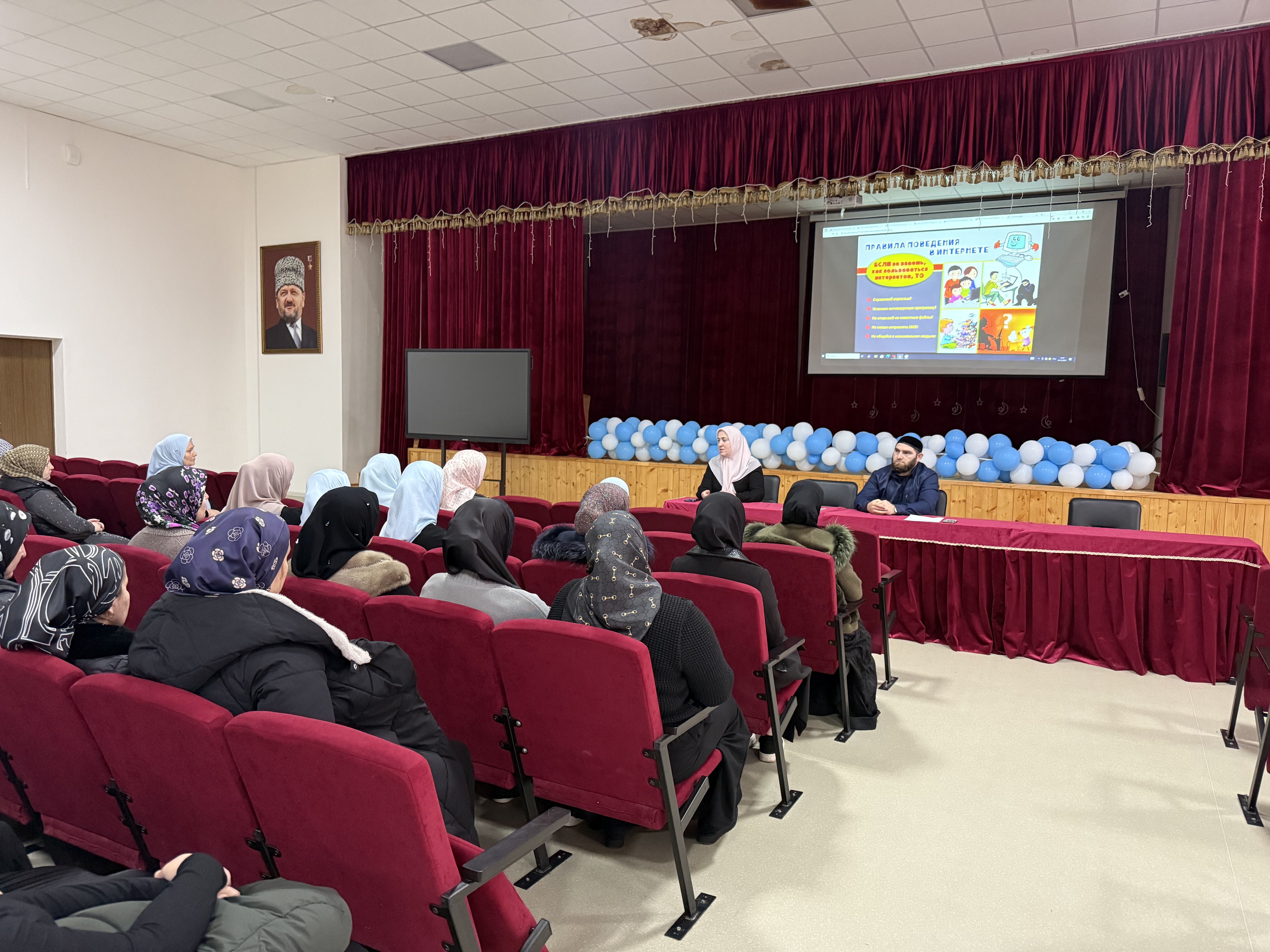 04.12.20254 декабря 2025 года в МБОУ №СШ №3 с. Ахмат-Юрт им. М.З. Айдамирова заместитель директора по воспитательной работе Абдрашитова М.А., школьный педагог-психолог Гудаева З.М. и педагог по духовно-нравственному воспитанию Закриев М.С. провели общешкольное родительское собрание с обсуждением темы: «Семейные правила использования интернет-времени (ограничение ежедневного экранного времени, контроль контента)»